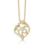 Hjerte/mor-barn halskæde i Sølv. Dansk design fra Støvring design. Hjerte/mor-barn halskæden er fremstillet i forgyldt sølv 925 sterling. Overfladen er blevet blankpoleret. En blankpolering giver en skinnende overflade. Derudover beskytter det også overfladen, så den ikke misfarves / smitter af.