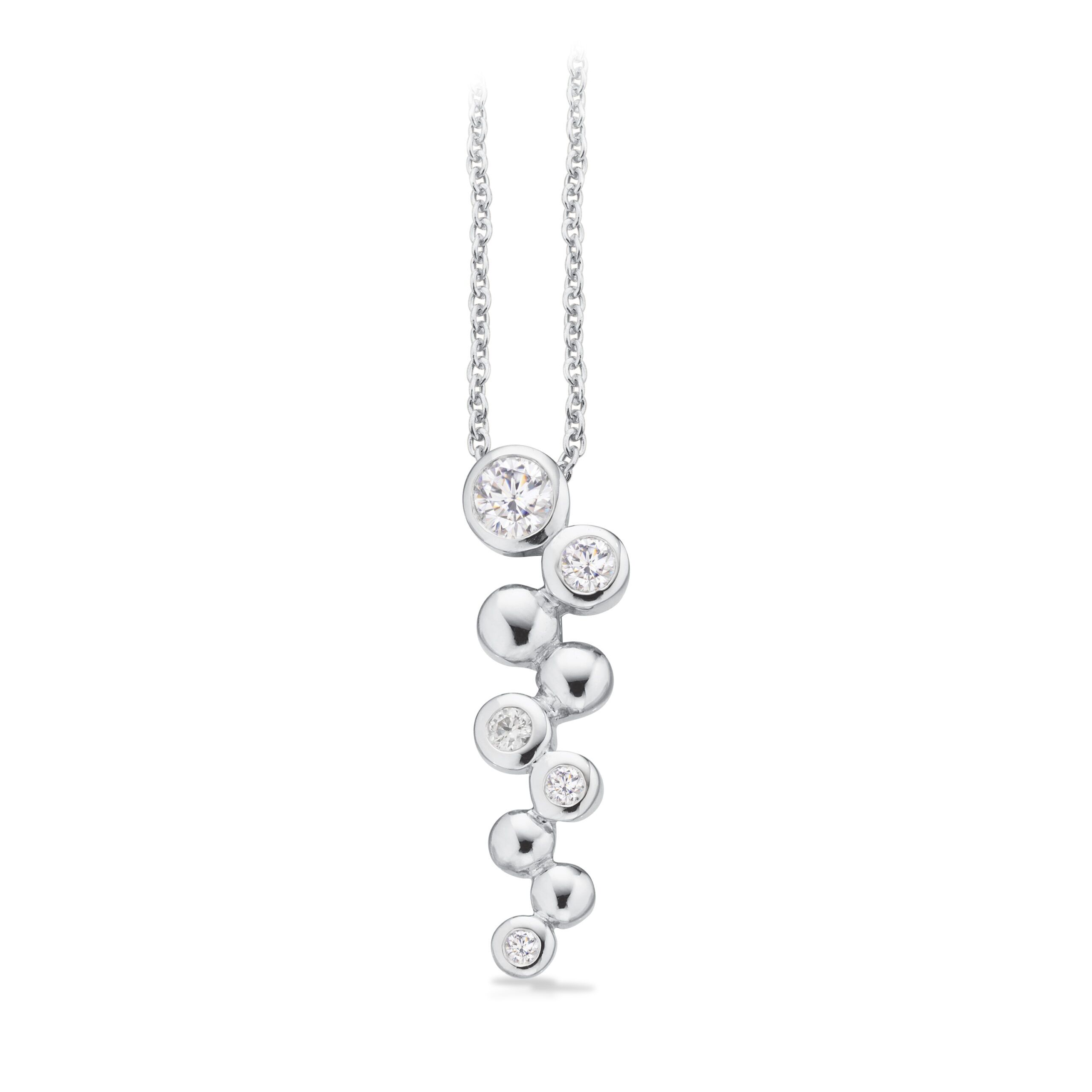 Forkæl dig selv eller en du holder af med denne smukke halskæde fra Scrouples. Halskæden er lavet af sølv med rhodium belægning og er dekoreret med skinnende zirkonia sten, der tilføjer et elegant touch til ethvert outfit. Med den medfølgende kæde kan du nemt justere længden, så den passer perfekt til dig.